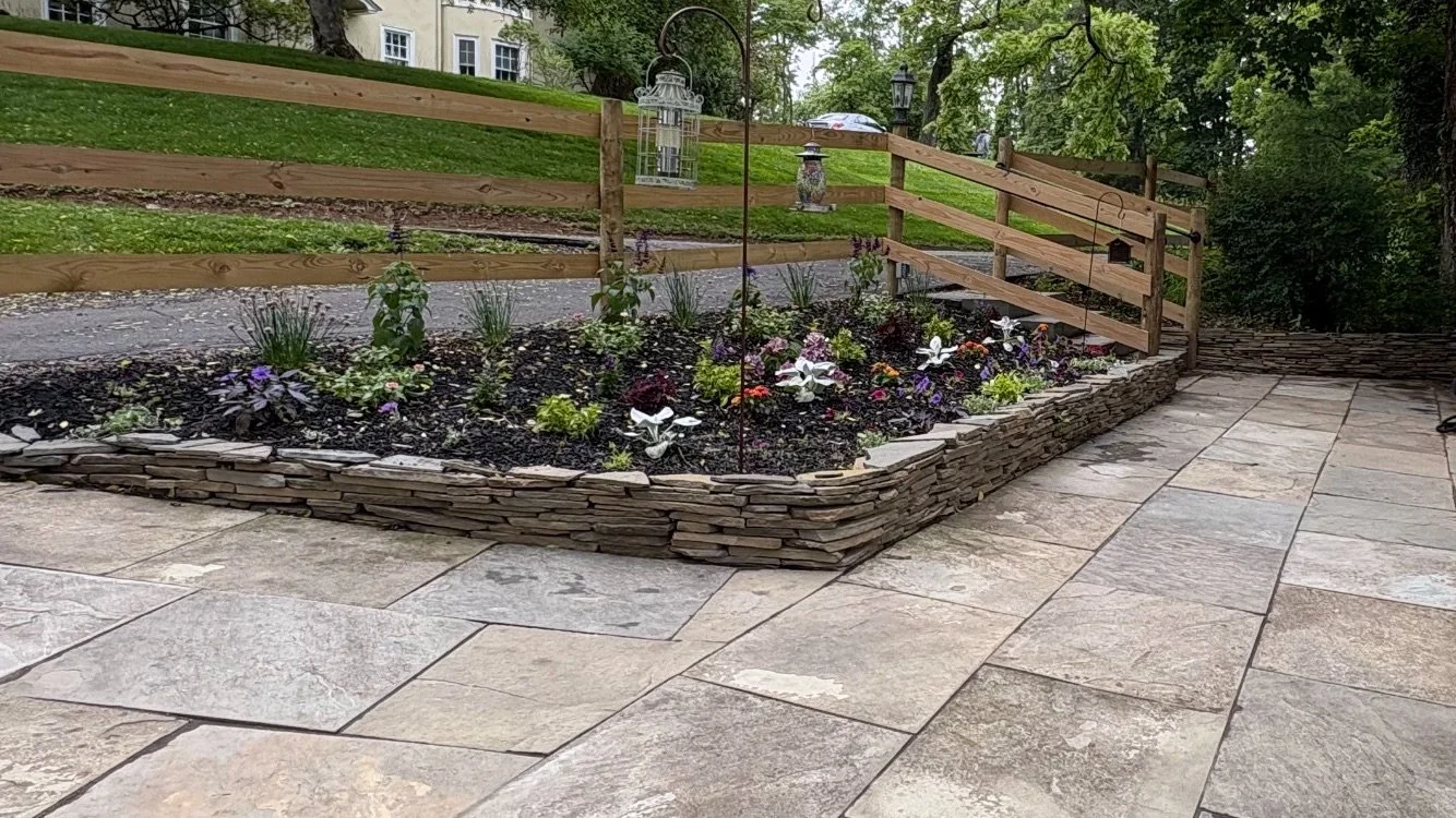 Planted a mix of annuals and perennials in this flower bed (Cultural Landscapes also installed the stone walkway, steps and fence).